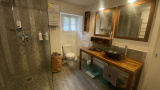 Elle se compose au RDC d'un séjour avec cheminée et poêle à bois, d'une cuisine et d'une salle d'eau avec WC.