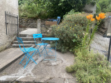 Située en plein coeur du village, cette maison dispose d'un jardin clôturé, d'un abri de jardin et de deux terrasses.