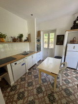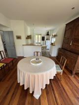 Elle se compose au RDC (surélevé), d'un hall desservant une cuisine ouverte sur la salle à manger, un séjour et un WC.